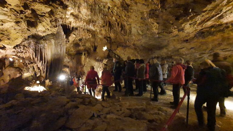 Unutrašnjost špilje uređena je sigurnim stazama dugim stotinjak metara. Oduševljava ljepotom raznih oblika siga, poput onih koje podsjećaju na razne predmete, preko kojih se proteže korijen vinove loze što crpi vodu sa špiljskog dna. Špilja se obiđe za otprilike pola sata, ali nakon razgleda avantura ne završava.