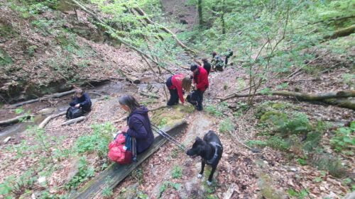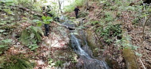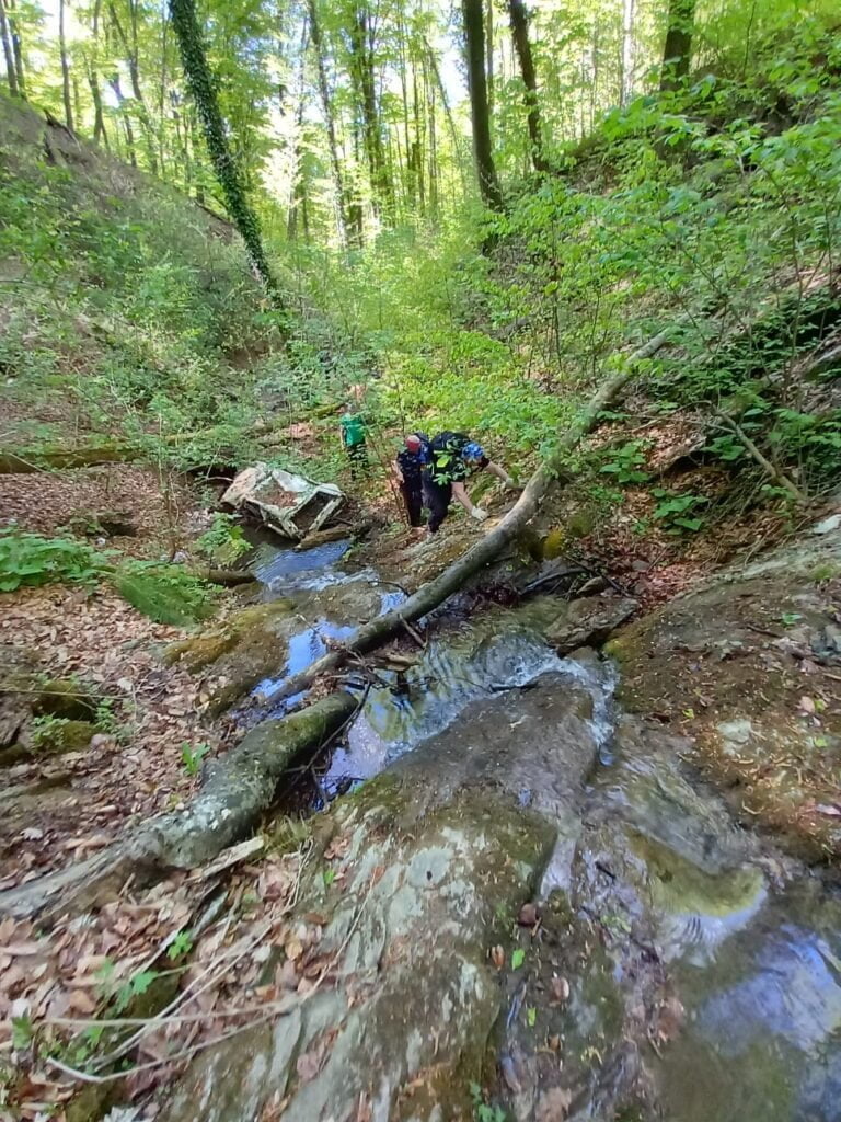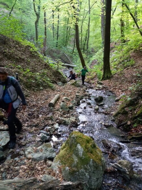 Tehnički zahtjevnija ruta. Penjanje po sklizavim stijenama Malog potoka na Medvednici, gotovo sve do Risnjaka te vraćanje prateći Veliki potok.